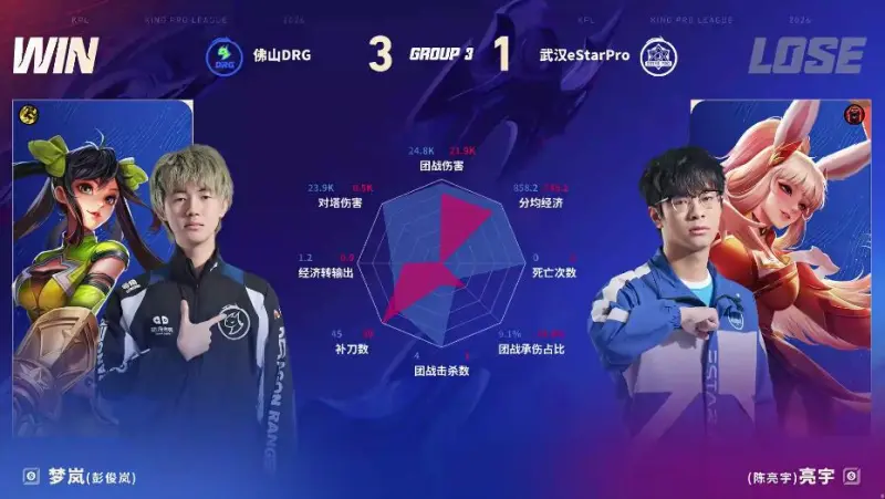 虎扑01月17日讯 DRG/ES第四局数据图:梦岚公孙离零死亡且多项数据拉满